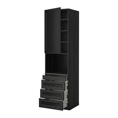 МЕТОД / МАКСИМЕРА Высокий шкаф д/комбинир СВЧ/4 ящика - 60x60x220 см, Лаксарби черно-коричневый, под дерево черный