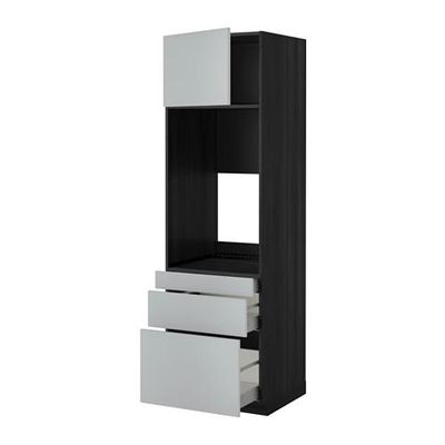 МЕТОД / МАКСИМЕРА Выс шкаф д/двойн духовки/3ящ/дверца - 60x60x200 см, Веддинге серый, под дерево черный