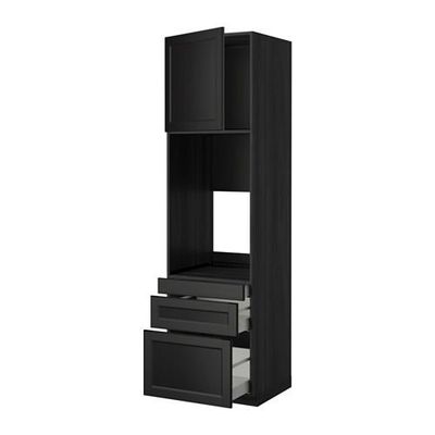 МЕТОД / МАКСИМЕРА Выс шкаф д/двойн духовки/3ящ/дверца - 60x60x220 см, Лаксарби черно-коричневый, под дерево черный