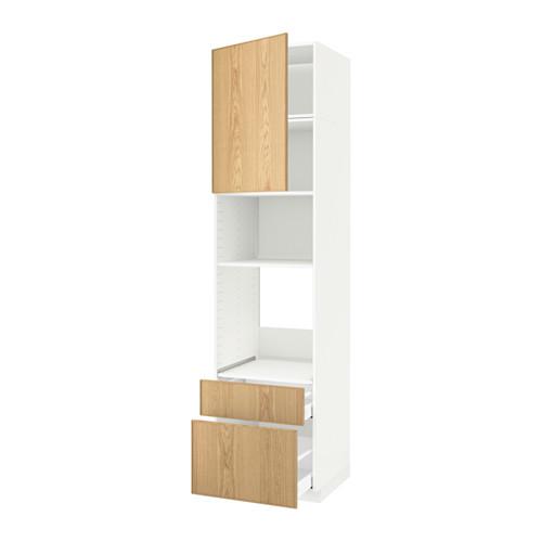 МЕТОД / МАКСИМЕРА Высок шкаф д/духовки/СВЧ/дверца/2ящ - белый, Экестад дуб, 60x60x240 см