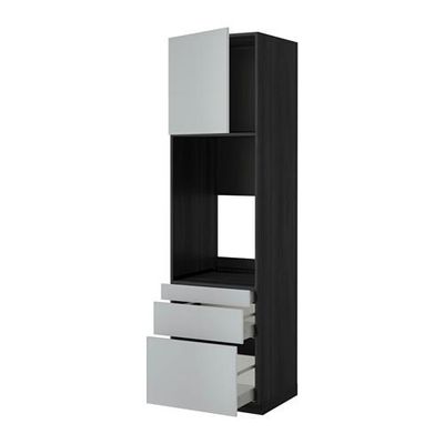 МЕТОД / МАКСИМЕРА Выс шкаф д/двойн духовки/3ящ/дверца - 60x60x220 см, Веддинге серый, под дерево черный