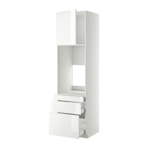 МЕТОД / МАКСИМЕРА Выс шкаф д/двойн духовки/3ящ/дверца - белый, Рингульт глянцевый белый, 60x60x220 см