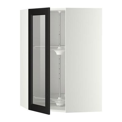 МЕТОД Углов навесн шк с врщ скц/сткл дв - 68x100 см, Лаксарби черно-коричневый, белый