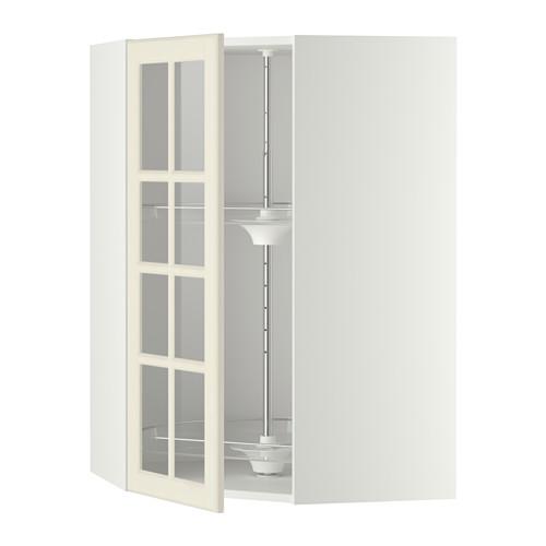 МЕТОД Углов навесн шк с врщ скц/сткл дв - белый, Будбин белый с оттенком, 68x100 см