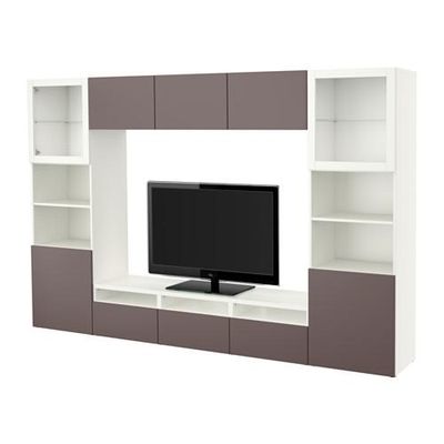 БЕСТО Шкаф для ТВ, комбин/стеклян дверцы - белый/Вальвикен темно-коричневый, прозрачное стекло, направляющие ящика, плавно закр