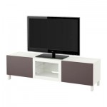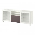 БЕСТО Тумба под ТВ, с дверцами и ящиками - белый/Вальвикен темно-коричневый, прозрачное стекло, направляющие ящика,нажимные