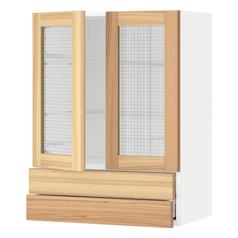 МЕТОД / МАКСИМЕРА Навесной шкаф/2 стек дв/2 ящика - белый, Торхэмн естественный ясень, 60x80 см