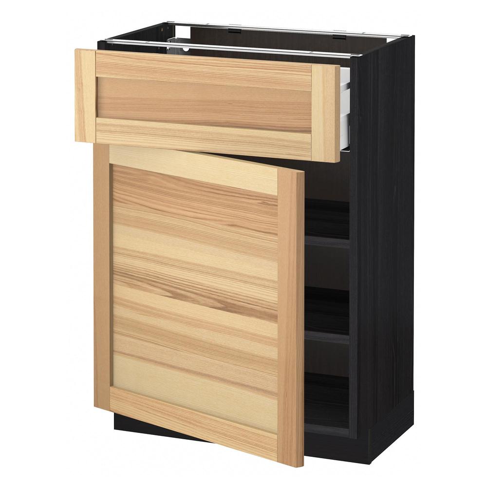 МЕТОД / МАКСИМЕРА Напольный шкаф с ящиком/дверью - под дерево черный, Торхэмн естественный ясень, 60x37 см