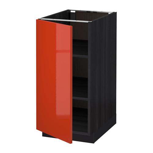 МЕТОД Напольный шкаф с полками - под дерево черный, Ерста глянцевый оранжевый, 40x60 см