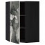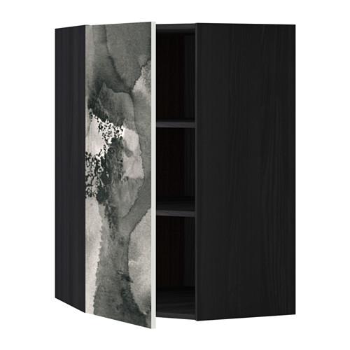 МЕТОД Угловой навесной шкаф с полками - под дерево черный, Кальвиа с печатным рисунком, 68x100 см