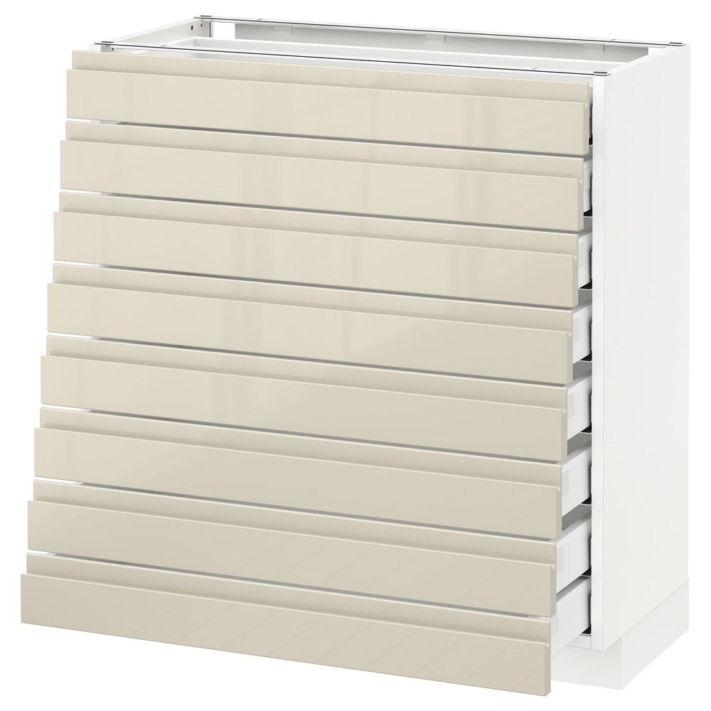 МЕТОД / МАКСИМЕРА Наполн шкаф 8 фронт/8 низк ящиков - белый, Воксторп глянцевый светло-бежевый, 80x37 см