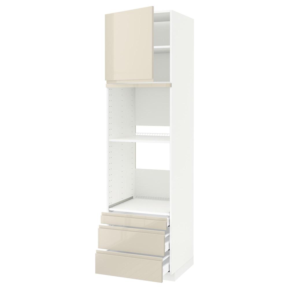 МЕТОД / МАКСИМЕРА Выс шкаф д/дхвк/комб дхвк+двр/3ящ - белый, Воксторп глянцевый светло-бежевый, 60x60x220 см