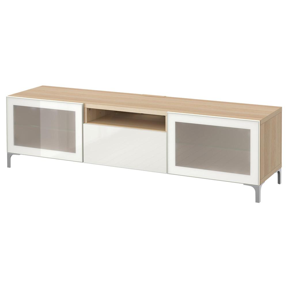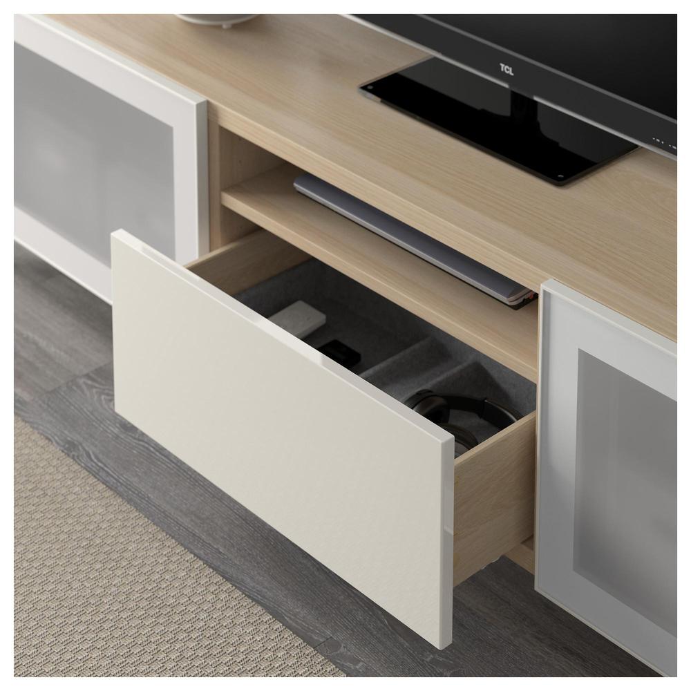 БЕСТО Тумба под ТВ - под беленый дуб/Сельсвикен глянцевый/белый матовое стекло, направляющие ящика,нажимные