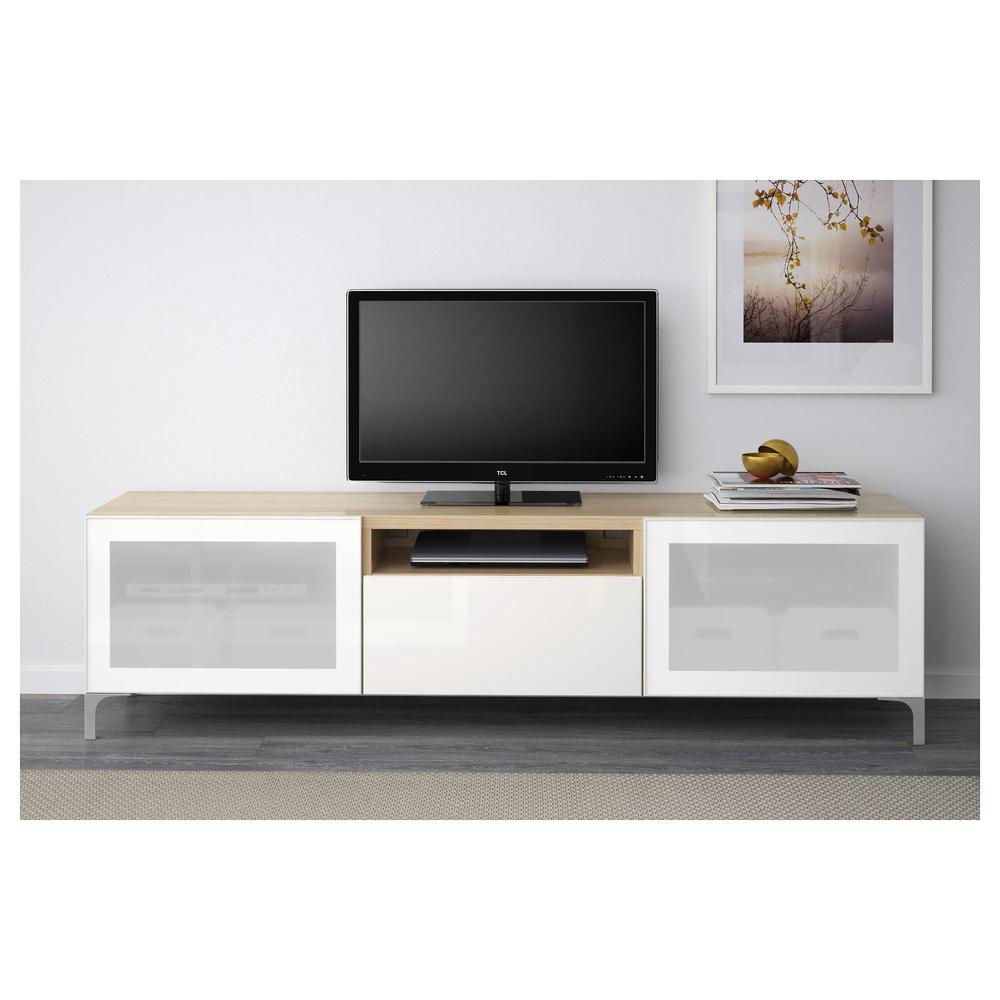 БЕСТО Тумба под ТВ, с дверцами - под беленый дуб/Сельсвикен глянцевый/белый матовое стекло, 180x40x48 см, направляющие ящика,нажимные 0.0/5 оценка (0 голосов)