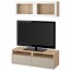 БЕСТО Шкаф для ТВ, комбин/стеклян дверцы - под беленый дуб/Сельсвикен глянцевый/бежевый прозрачное стекло, направляющие ящика, плавно закр