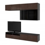 БЕСТО Шкаф для ТВ, комбин/стеклян дверцы - черно-коричневый/Сельсвикен глянцевый/коричневый прозрач стекло, направляющие ящика,нажимные