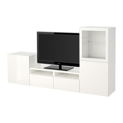 БЕСТО Шкаф для ТВ, комбин/стеклян дверцы - белый/Сельсвикен глянцевый/белый прозрачное стекло, направляющие ящика,нажимные