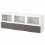БЕСТО Тумба под ТВ, с дверцами и ящиками - белый Грундсвикен/темно-серый прозрачное стекло, направляющие ящика, плавно закр