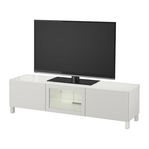БЕСТО Тумба под ТВ, с дверцами - белый Синдвик/Лаппвикен светло-серый прозрачное стекло, 180x40x48 см, направляющие ящика,нажимные