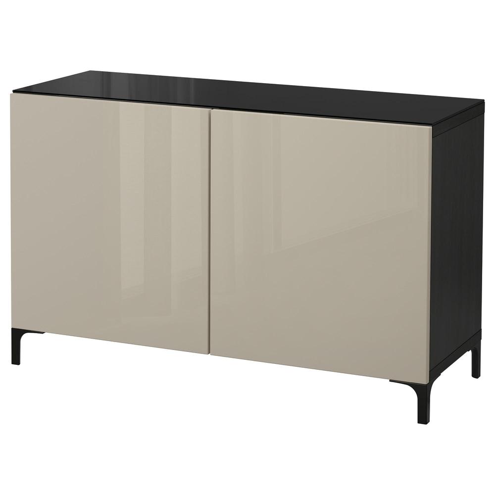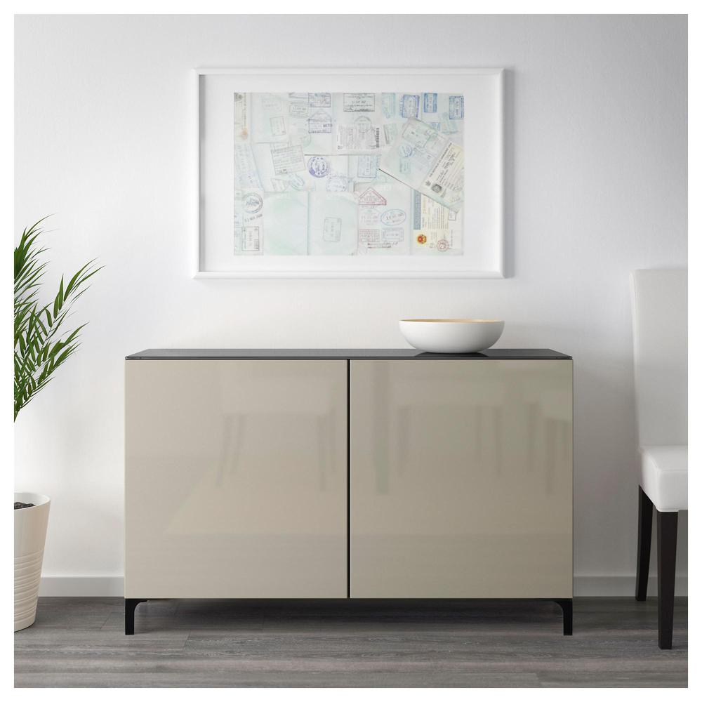 БЕСТО Комбинация для хранения с дверцами - черно-коричневый/Сельсвикен глянцевый/бежевый