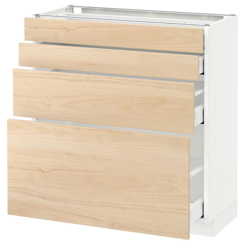 МЕТОД / МАКСИМЕРА Напольн шкаф 4 фронт панели/4 ящика - белый, Аскерсунд под светлый ясень, 80x37 см