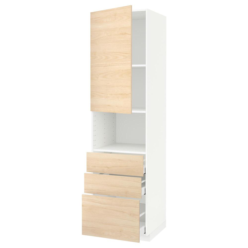 МЕТОД / МАКСИМЕРА Высокий шкаф д/СВЧ+дверца/3 ящика - белый, Аскерсунд под светлый ясень, 60x60x220 см