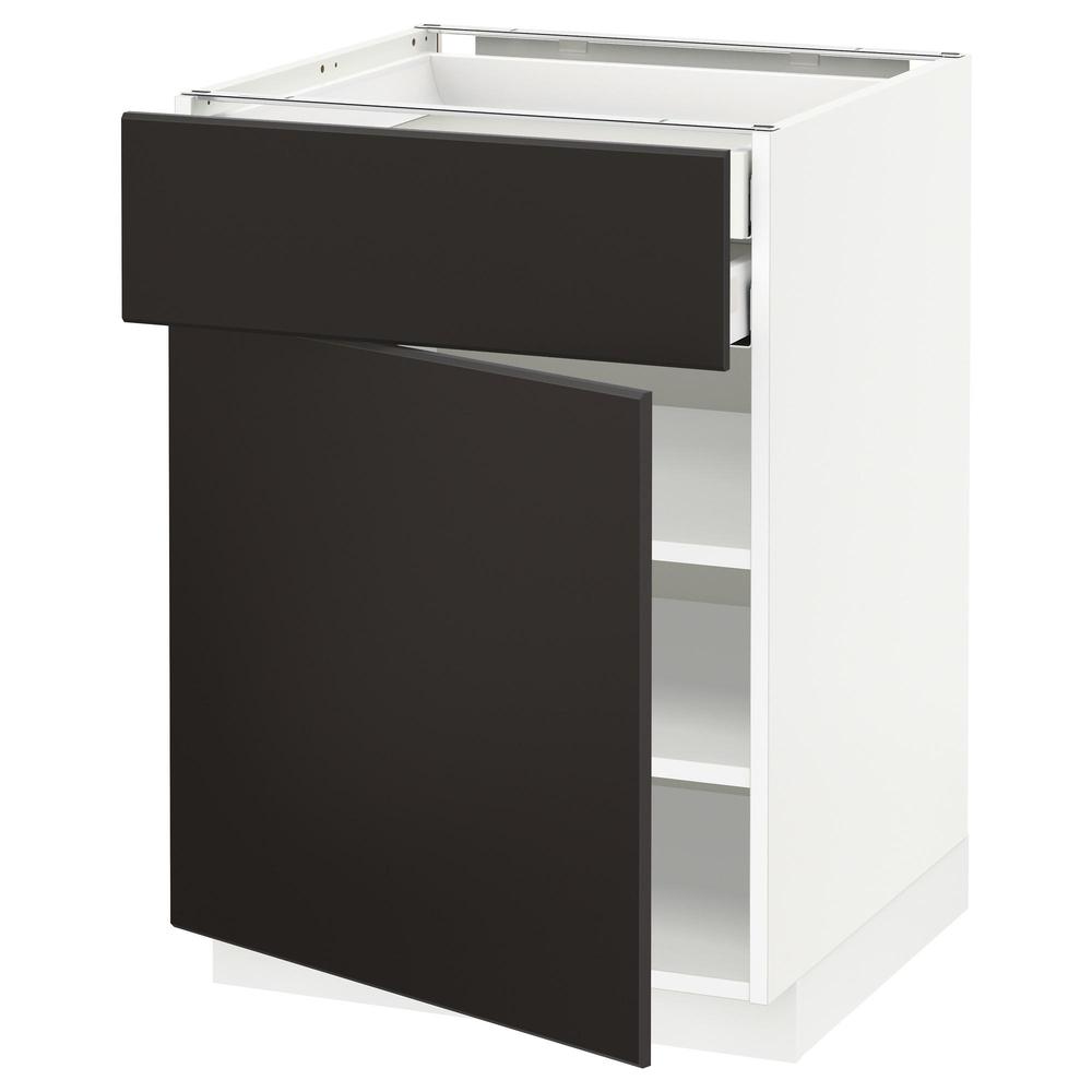 МЕТОД / МАКСИМЕРА Напольн шкаф двр/фр пнл/плк/2низ ящ - белый, Кунгсбакка антрацит, 60x60 см