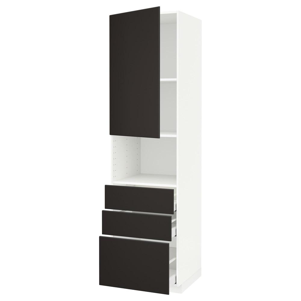 МЕТОД / МАКСИМЕРА Высокий шкаф д/СВЧ+дверца/3 ящика - белый, Кунгсбакка антрацит, 60x60x220 см