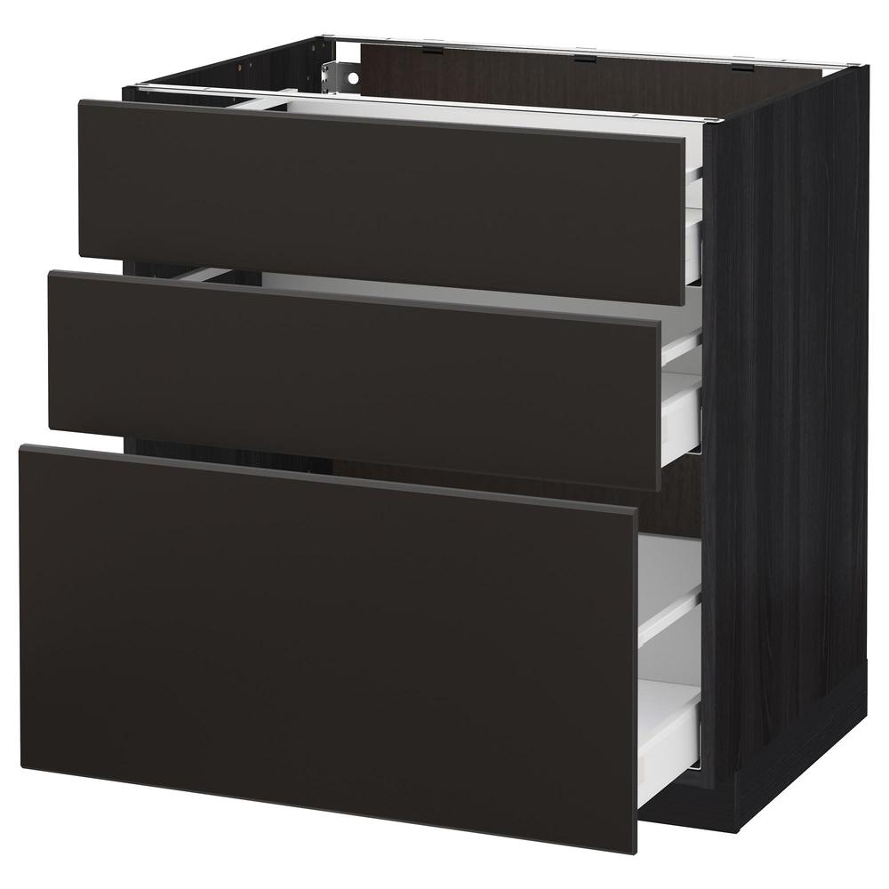 МЕТОД / МАКСИМЕРА Напольный шкаф с 3 ящиками - под дерево черный, Кунгсбакка антрацит, 80x60 см