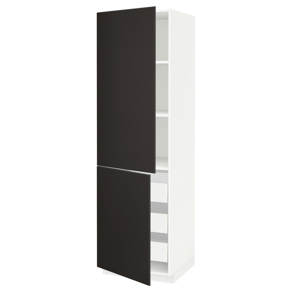 МЕТОД / МАКСИМЕРА Высокий шкаф+полки/3 ящика/2 дверцы - белый, Кунгсбакка антрацит, 60x60x200 см