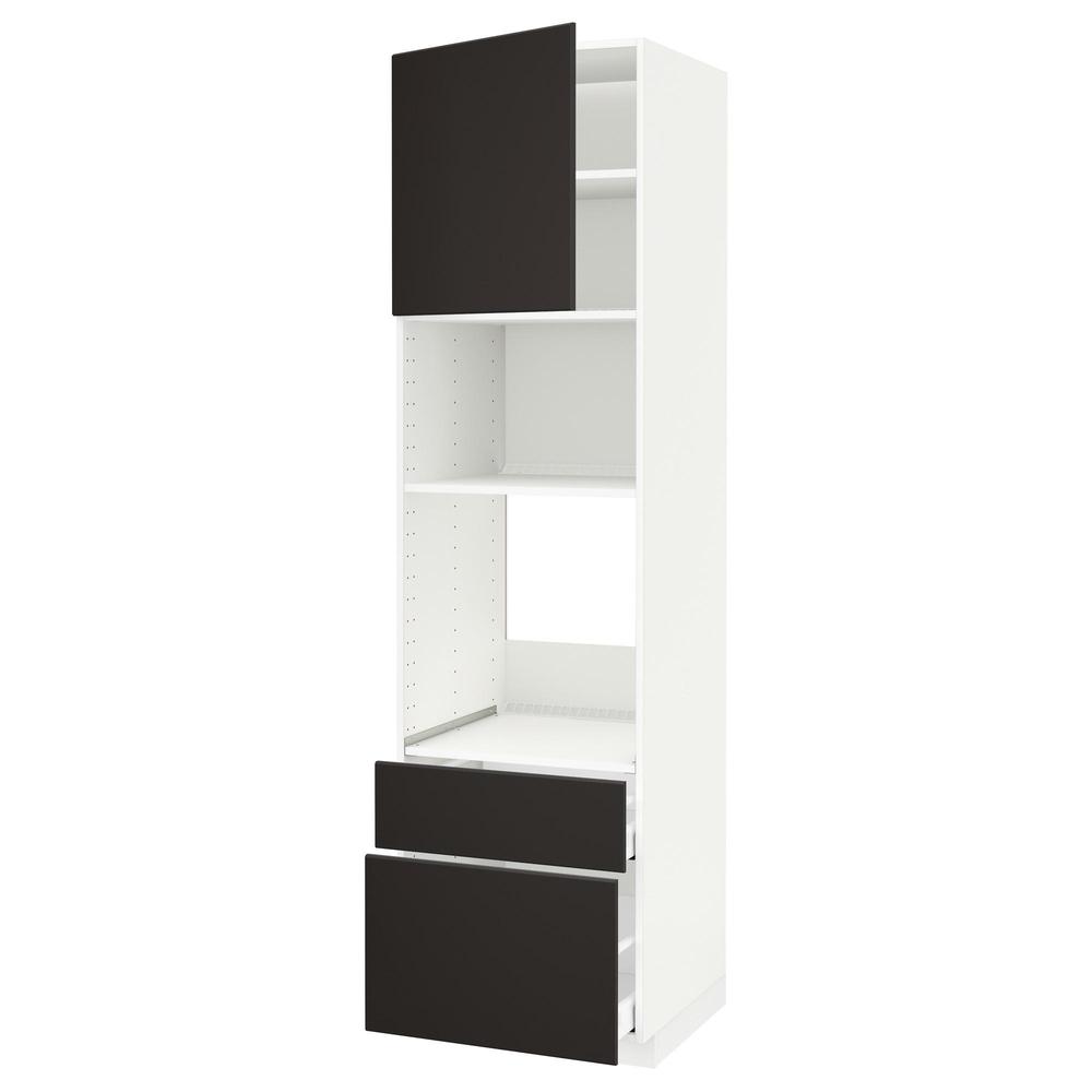 МЕТОД / МАКСИМЕРА Высок шкаф д/духовки/СВЧ/дверца/2ящ - белый, Кунгсбакка антрацит, 60x60x220 см