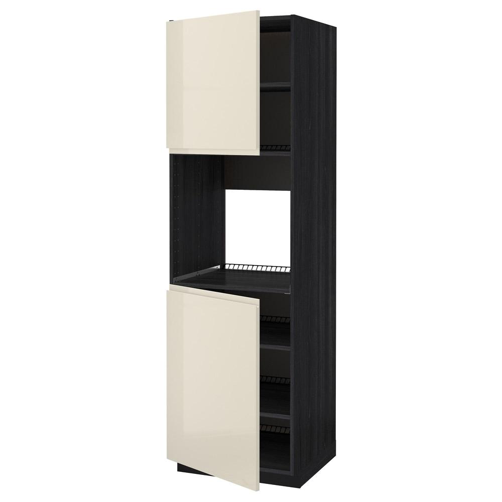 МЕТОД Высок шкаф д/духовки/2дверцы/полки - под дерево черный, Воксторп глянцевый светло-бежевый, 60x60x200 см