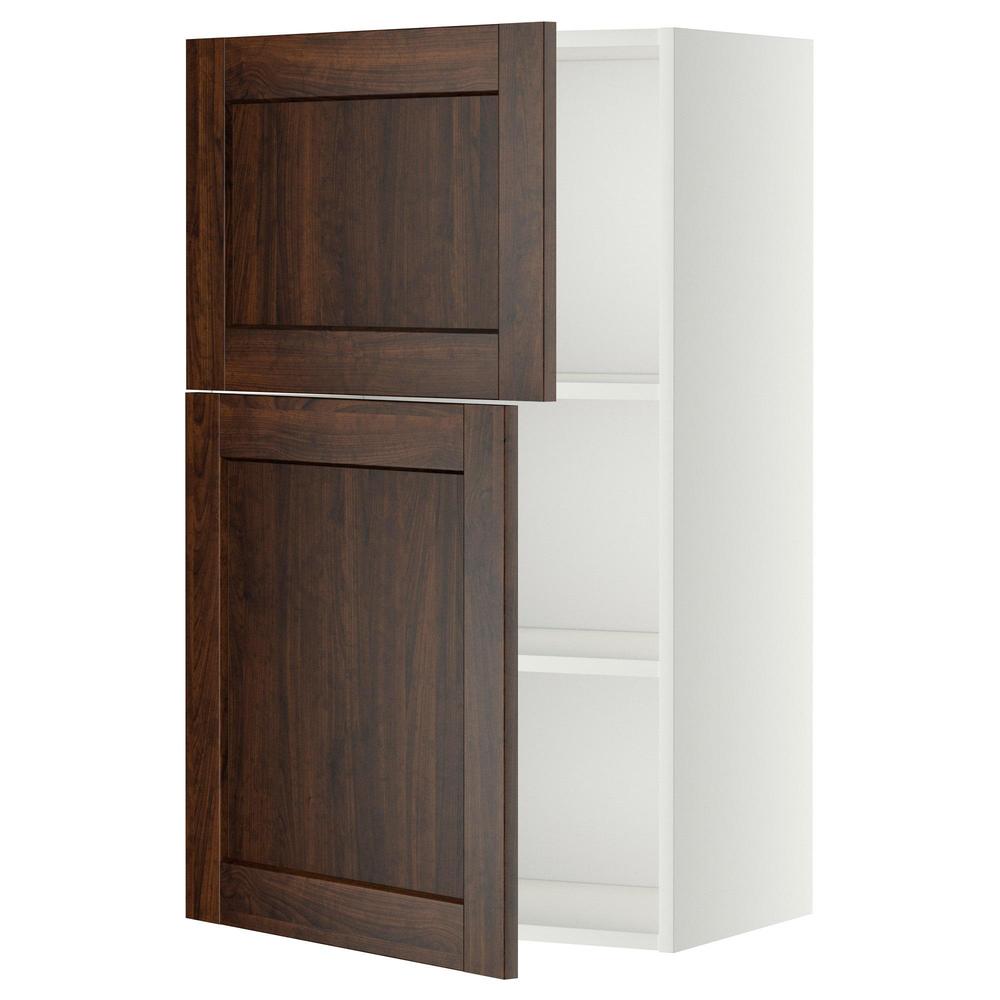 МЕТОД Навесной шкаф с полками/2дверцы - белый, Эдсерум под дерево коричневый