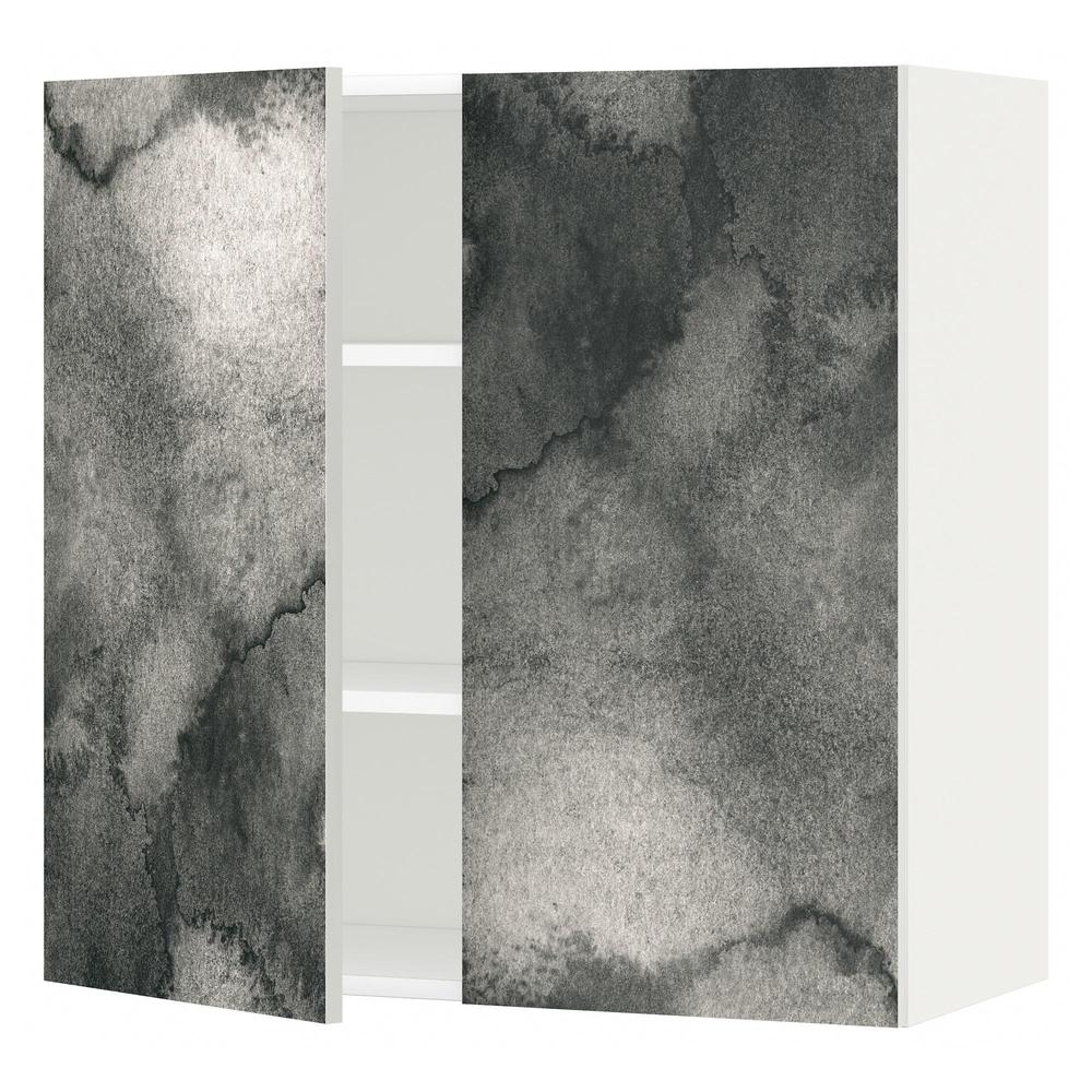 МЕТОД Навесной шкаф с полками/2дверцы - белый, Кальвиа с печатным рисунком, 80x80 см