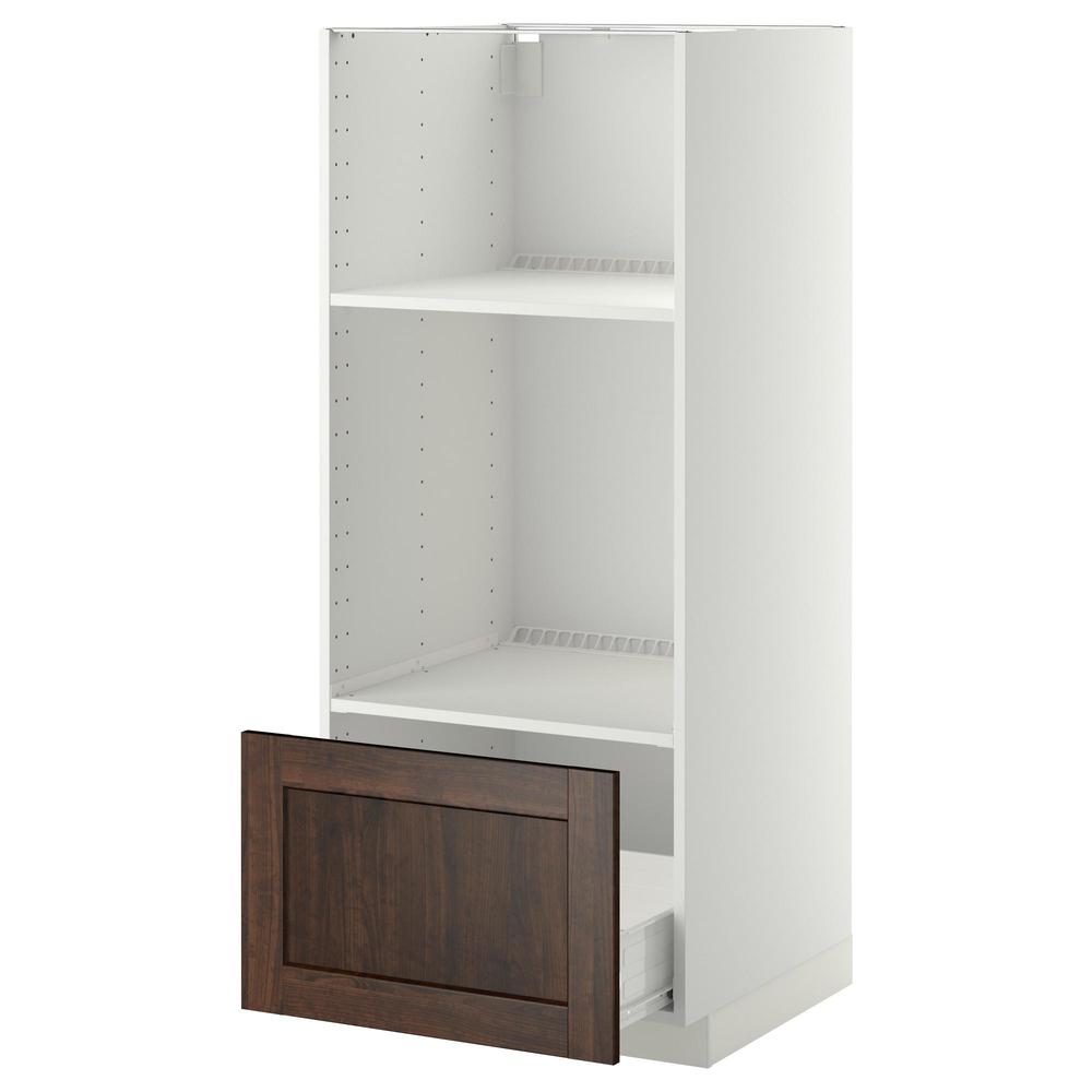 МЕТОД / ФОРВАРА Высокий шкаф с ящиком д/духовки/СВЧ - белый, Эдсерум под дерево коричневый
