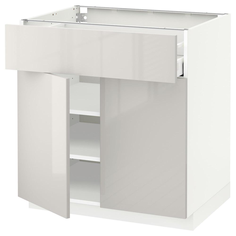 МЕТОД / МАКСИМЕРА Напольный шкаф+ящик/2дверцы - белый, Рингульт глянцевый светло-серый, 80x60 см