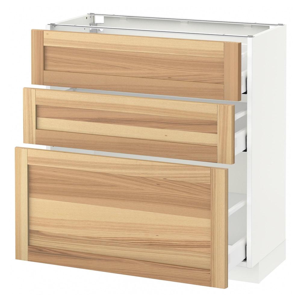 МЕТОД / МАКСИМЕРА Напольный шкаф с 3 ящиками - белый, Торхэмн естественный ясень, 80x37 см
