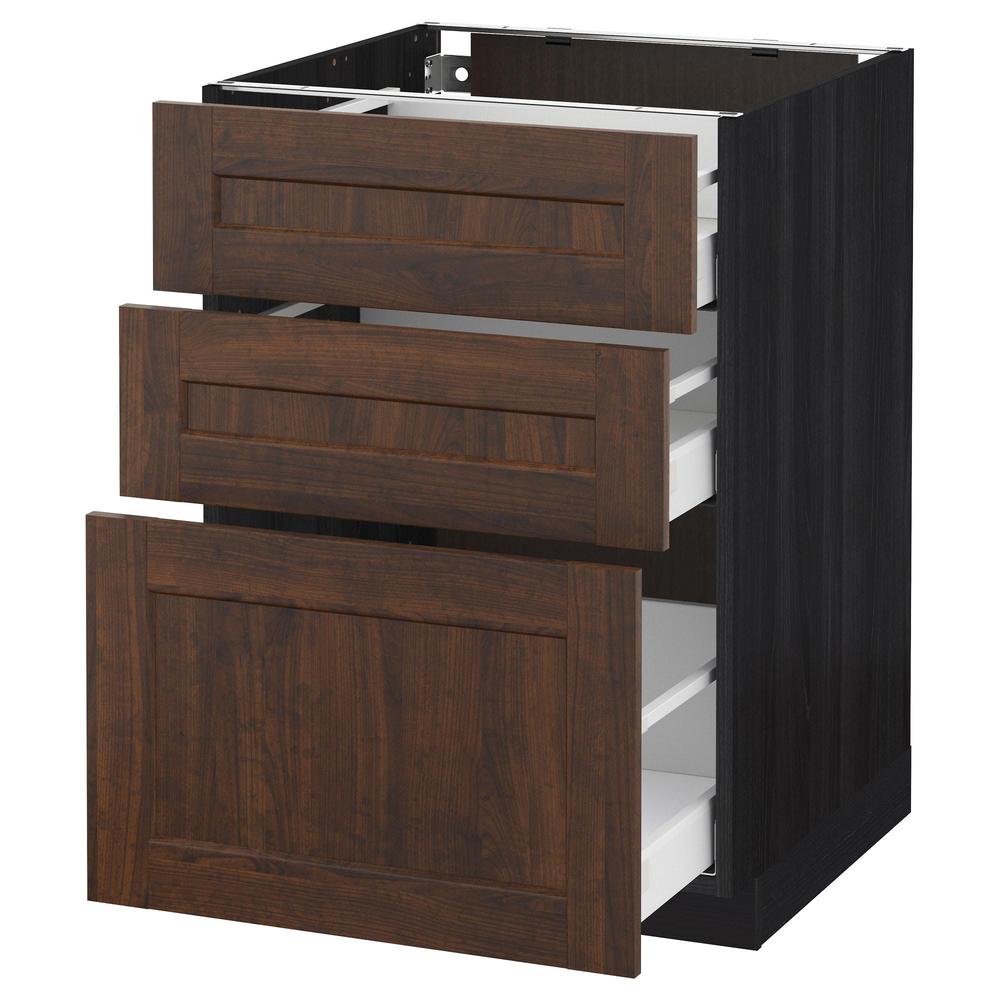 МЕТОД / МАКСИМЕРА Напольный шкаф с 3 ящиками - под дерево черный, Эдсерум под дерево коричневый, 60x60 см
