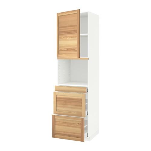 МЕТОД / МАКСИМЕРА Высокий шкаф д/СВЧ/дверца/3ящика - белый, Торхэмн естественный ясень, 60x60x220 см