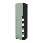 МЕТОД / ФОРВАРА Высокий шкаф/2дверцы/4ящика - под дерево черный, Калларп глянцевый светло-зеленый, 40x60x240 см