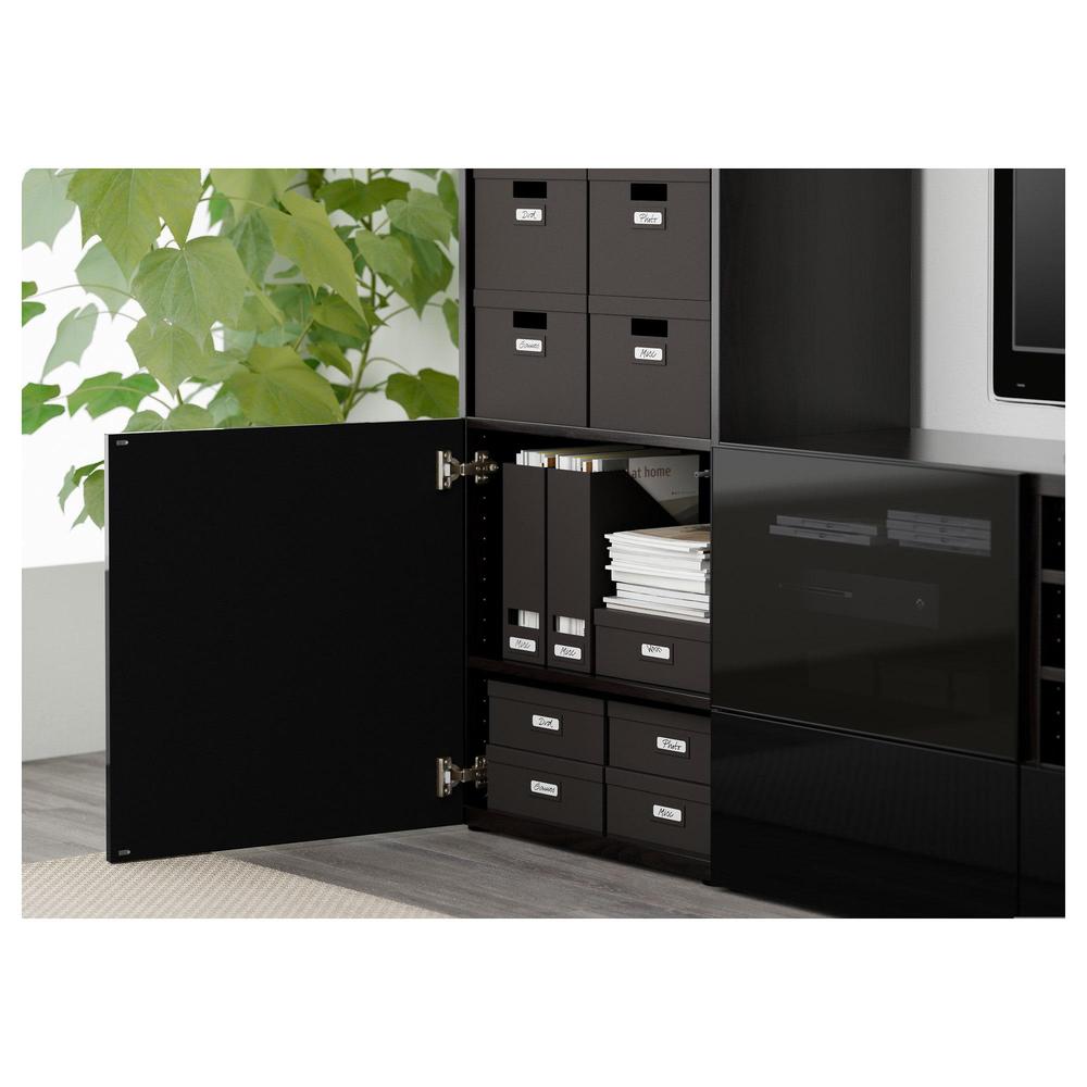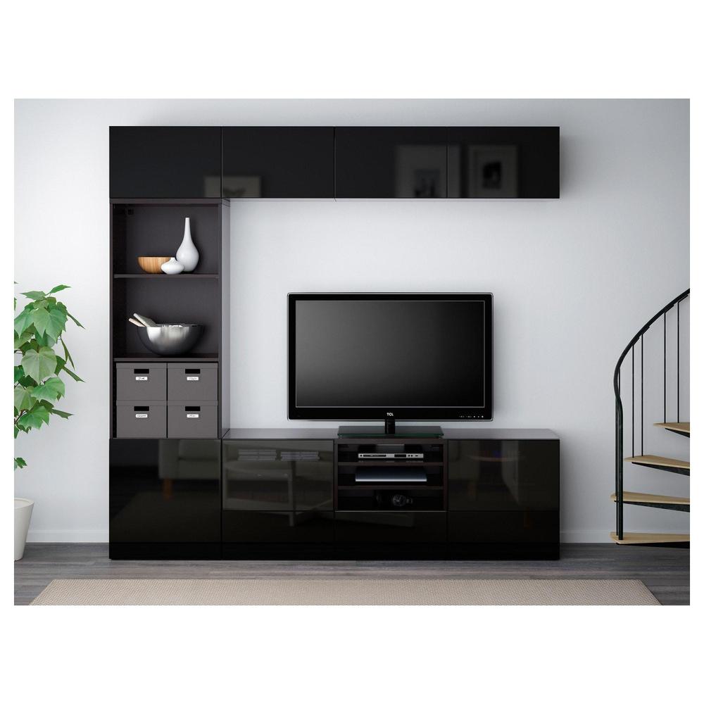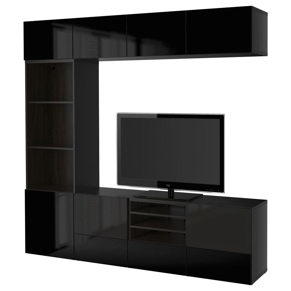 БЕСТО Шкаф для ТВ, комбин/стеклян дверцы - черно-коричневый/Сельсвикен глянцевый/черный дымчатое стекло, направляющие ящика, плавно закр