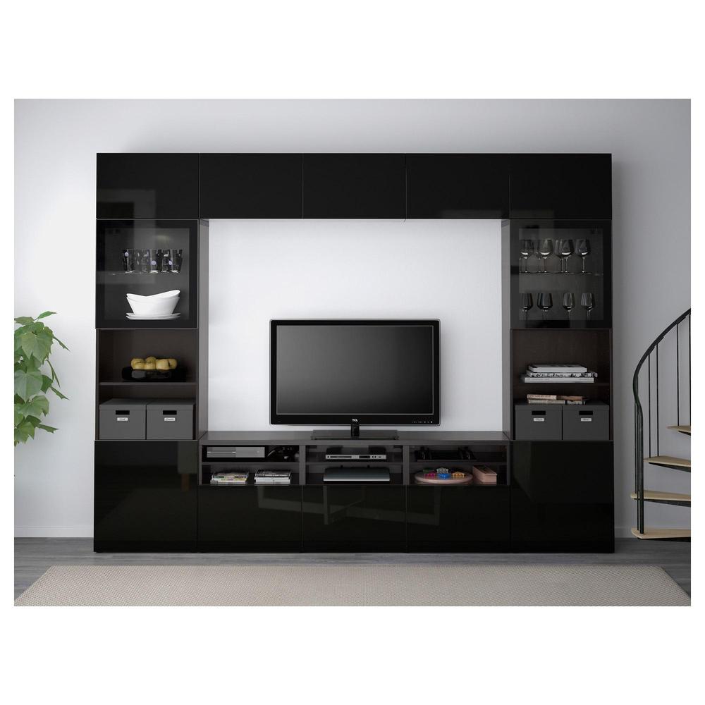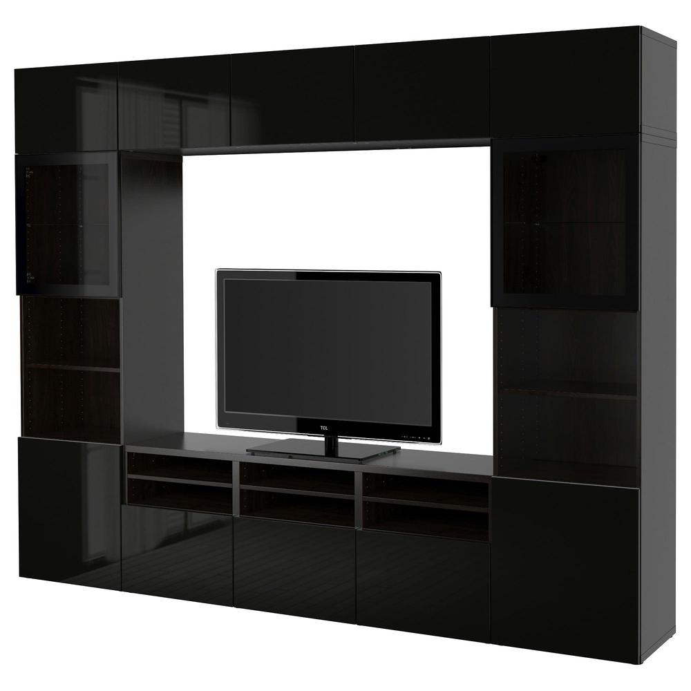 БЕСТО Шкаф для ТВ, комбин/стеклян дверцы - черно-коричневый/Сельсвикен глянцевый/черный прозрачное стекло, направляющие ящика,нажимные