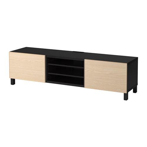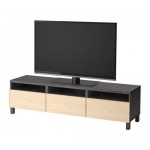 БЕСТО Тумба д/ТВ с ящиками - черно-коричневый/Инвикен ясеневый шпон, направляющие ящика, плавно закр