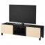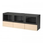 БЕСТО Тумба под ТВ с ящиками и дверцей - черно-коричневый Инвикен/ясеневый шпон прозрачное стекло, направляющие ящика,нажимные