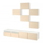 БЕСТО Шкаф для ТВ, комбинация - белый/Инвикен ясеневый шпон, направляющие ящика,нажимные