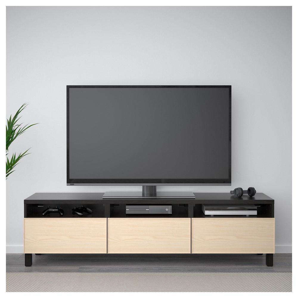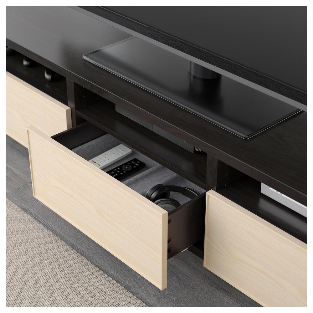 БЕСТО Тумба д/ТВ с ящиками - черно-коричневый/Инвикен ясеневый шпон, направляющие ящика, плавно закр