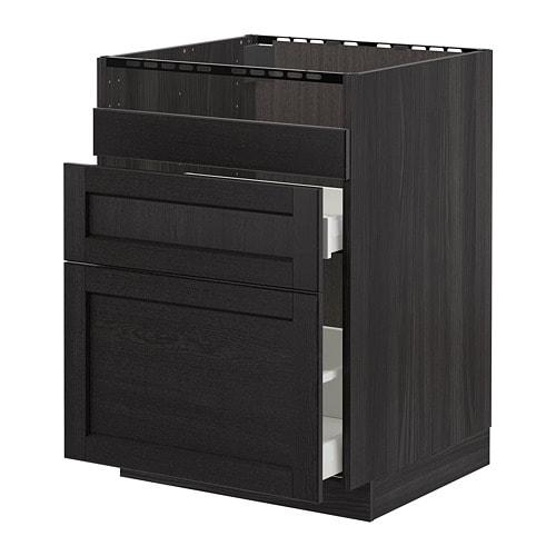 МЕТОД Напол шк д/мойки ХАВСЕН/3фасада/2ящ - под дерево черный, Лерх черная морилка, 60x60 см