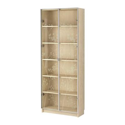БИЛЛИ/БИЛЛИ ВАЛЬБО Шкаф книжный со стеклянными дверьми - березовый шпон