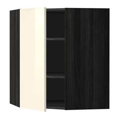 МЕТОД Угловой навесной шкаф с полками - 68x80 см, Рингульт глянцевый кремовый, под дерево черный