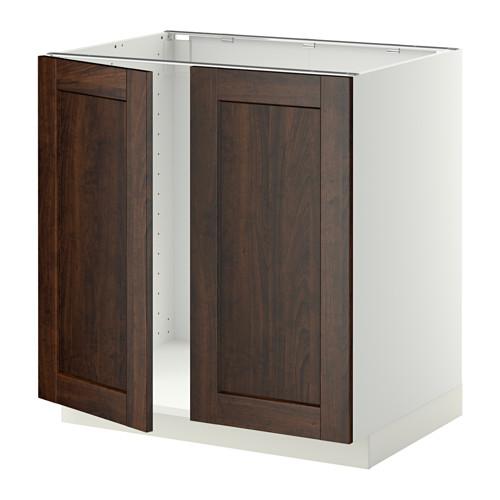 МЕТОД Напольн шкаф д раковины+2 двери - белый, Эдсерум под дерево коричневый